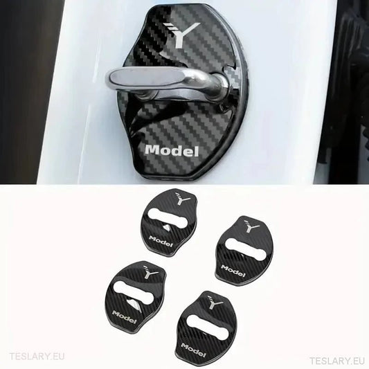 Tesla Model 3 / Y / X Stainless Steel Door Lock Protective Cover with Logo ( 4 PACK )