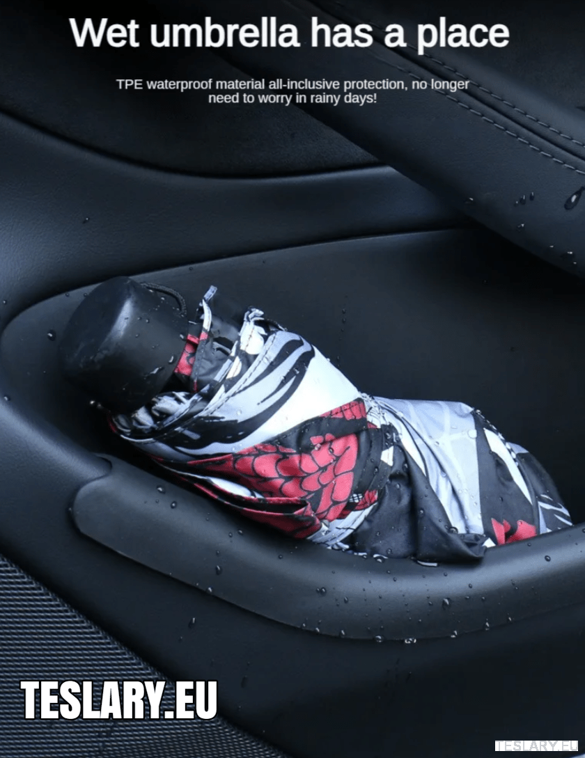 Et af de spørgsmål, vi er blevet stillet utallige gange, er, om en våd paraply kan lægges i opbevaringslommen, og svaret er, hvis ja. Jeg har selv gjort dette i min egen Tesla Model Y fra 2024 for at teste dette for en kunde, og jeg kan bekræfte, at jeg slet ikke havde nogen problemer. Det var også ideelt at opbevare paraplyen, men så var jeg nødt til at finde et nyt sted til alt det, jeg havde opbevaret i opbevaringslommen på førersiden!
