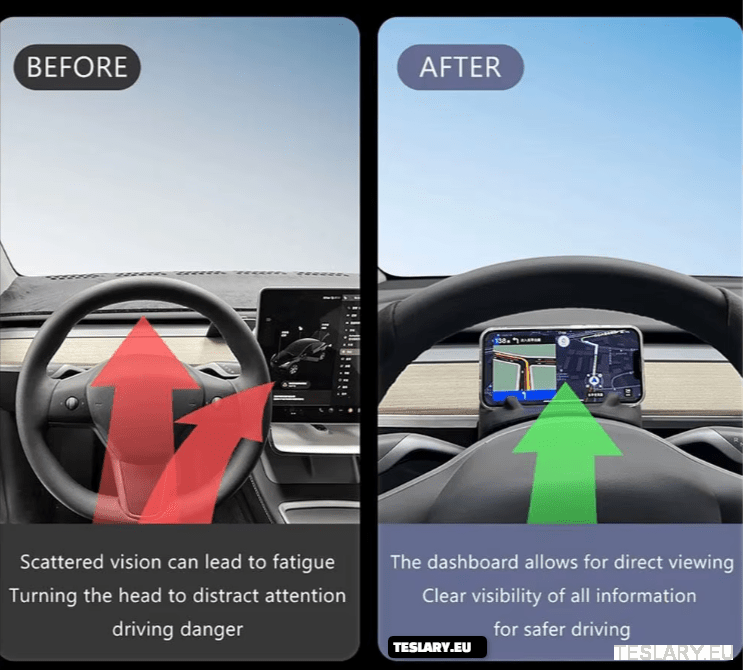 Rattet foran opbevaring + telefonholder til Tesla Model 3/Y