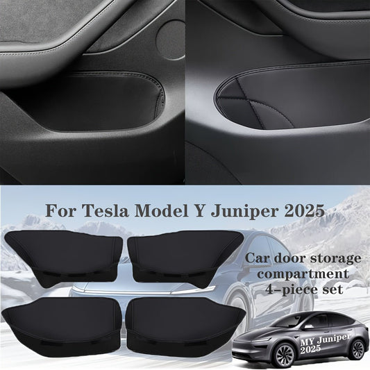 Interior Protection Mats Suitable for Tesla Model Y Juniper 2025+ | Door Slot Mats, Napa Synthetic Faux Leather Door Slot Storage Box Mats, Front And Rear Door 4pcs Set, for Tesla Model Y Juniper