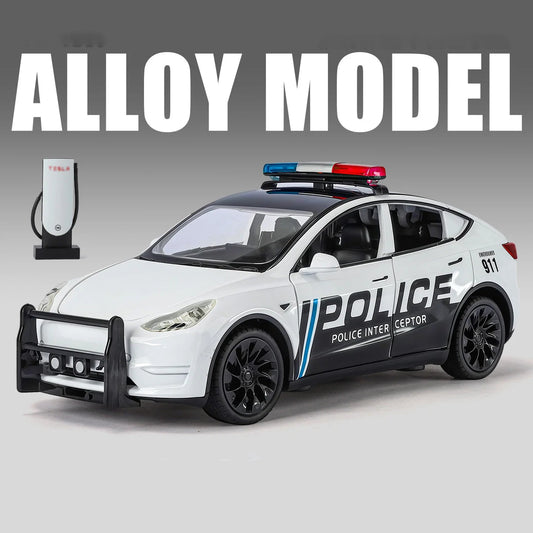 Tesla Model Y SUV Alloy Police New Energy Car Model Diecast Metal Vehicles Car Model Simulation Sound and Light Children Toy Gift