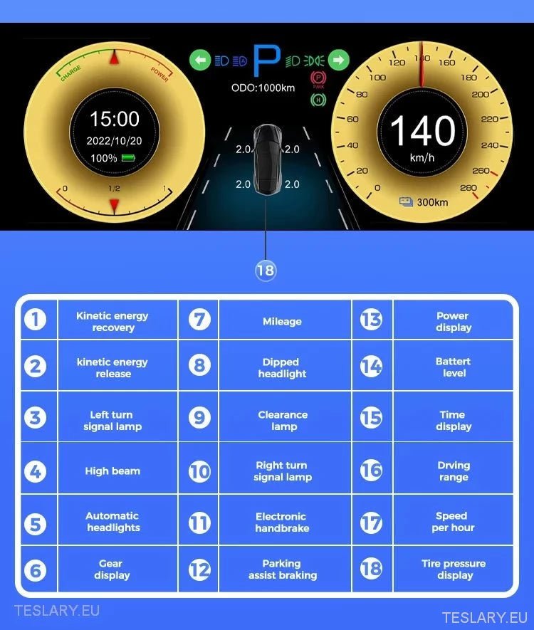 Compatible avec les voitures Tesla Model 3 et Model Y à conduite à gauche et à droite en Irlande, au Royaume-Uni et en Europe.