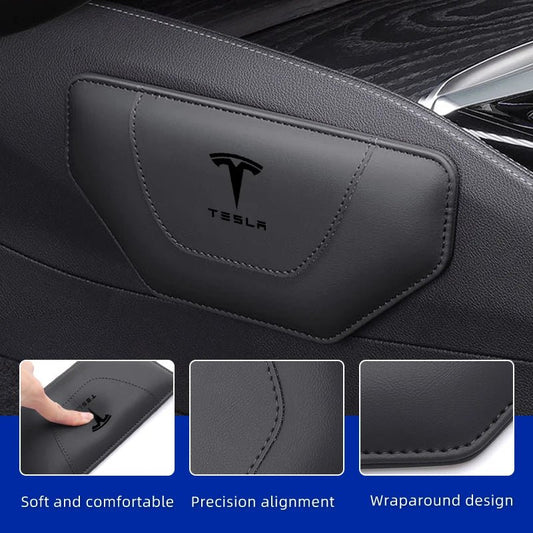 Knee Protection Pads in Alacantara Black Leather for Tesla 3 Y S X with Logo