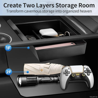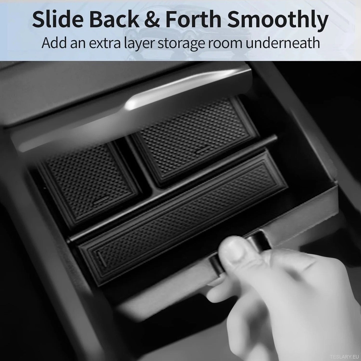 Tesla Model 3+ Highland / Model Y Juniper 4-1 Organizer Kit Centre Console Organizer Tray, ABS Material, Smooth-Slide Armrest Storage Box with Cup Holder, Compatible with Highland Model ONLY!