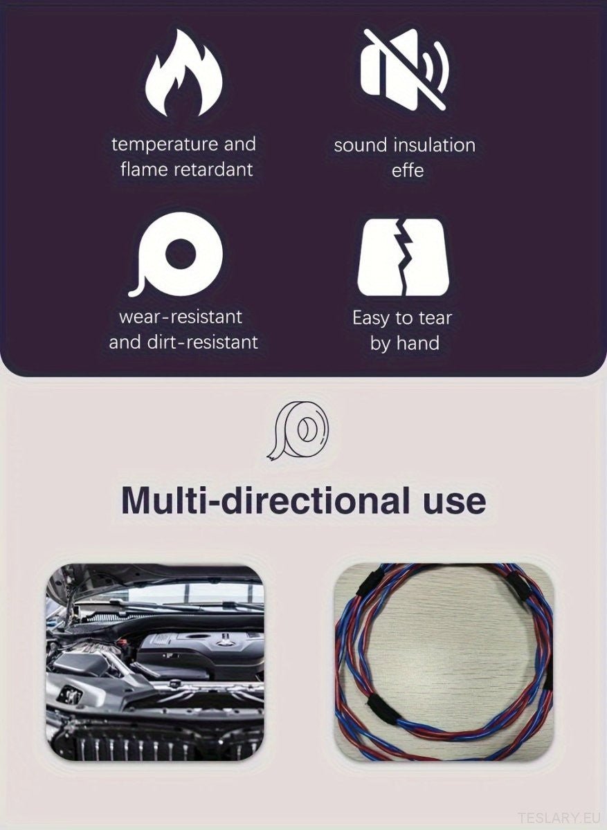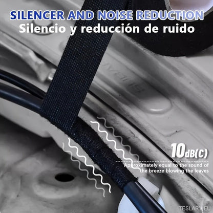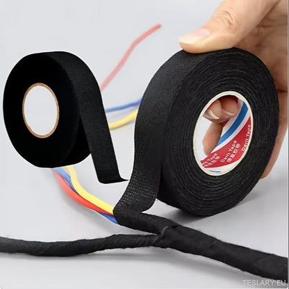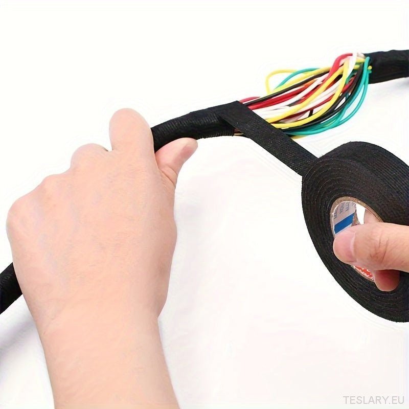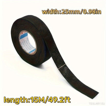 Fabric tape is an expert-recommended solution to eliminate rattles and unwanted noises in your Tesla. Designed to be applied on fasteners and clips before insertion into the vehicle body, this tape creates a noise-dampening barrier between surfaces, effectively reducing vibrations and squeaks. Its heat-resistant and waterproof properties ensure durability in automotive environments, while the fabric cloth construction provides reliable insulation. Widely used by professionals, this tape is compatible with all Tesla models and is essential for maintaining a quiet, comfortable driving experience. With a 25mm width and 15m length, it offers ample coverage for workshop applications.