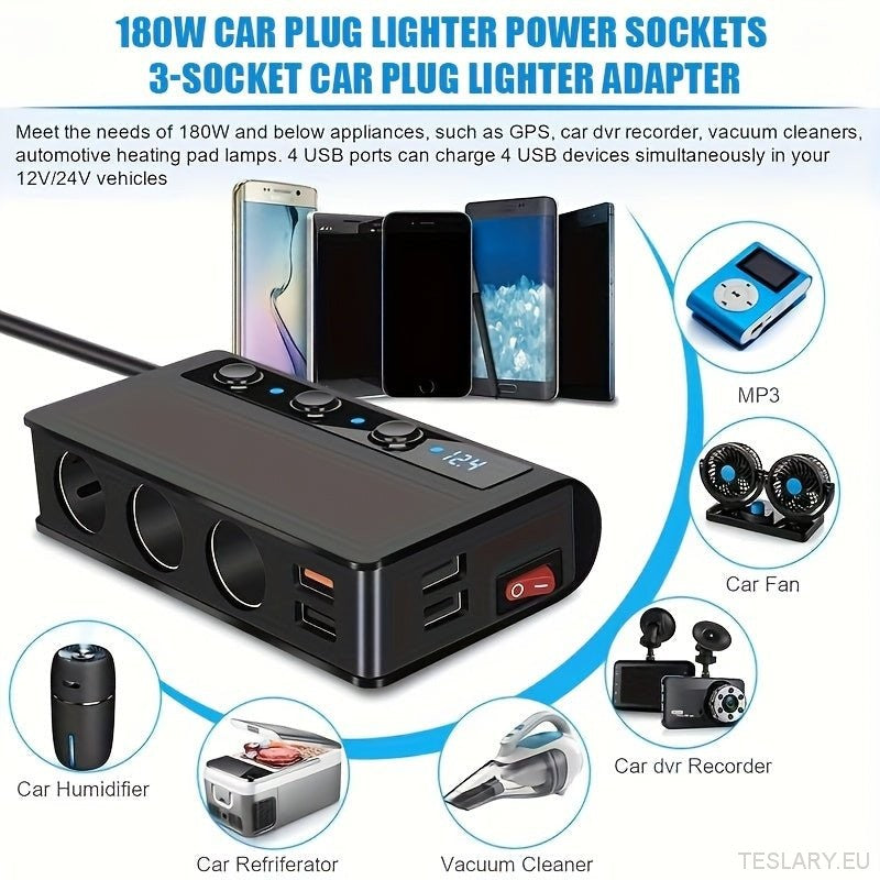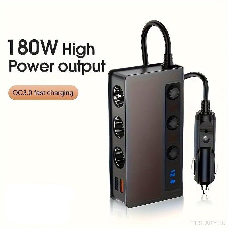 High-Power 120W/180W Car Charger with Dual USB Ports & Voltage Display - Fit for 12V/24V Vehicles, Fast Charge Adapter