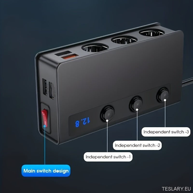 Convenient, reliable, and efficient. With a built-in voltage display, this car charger guarantees peace of mind and ensures your battery is always in tip-top shape. Designed to fit seamlessly into your car's interior, it's the perfect gadget for individuals who value quality and convenience. Plus, its fast charging adapter means you won't have to waste any time waiting for your devices to charge. Experience luxury on the road with this sleek and essential car charger.