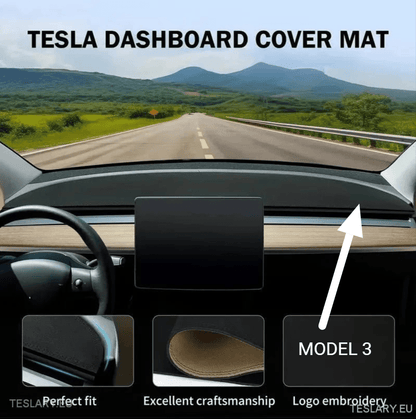 Tesla Model 3 Suede Anti Glare Dashboard Cover with Model 3 Logo