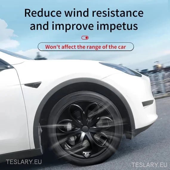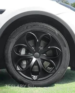 Tesla Y Sports Style 19" Black Petal Style Wheel Caps x 4  Full Coverage Wheel Cover and comes with 4 Centre Caps and Protective tape for the outer inside rim to ensure the perfect fit as well as the ultimate in looks and performance. Get the Sports Styling without losing range with these 19" Wheels Caps with Bilateral Symmetry.