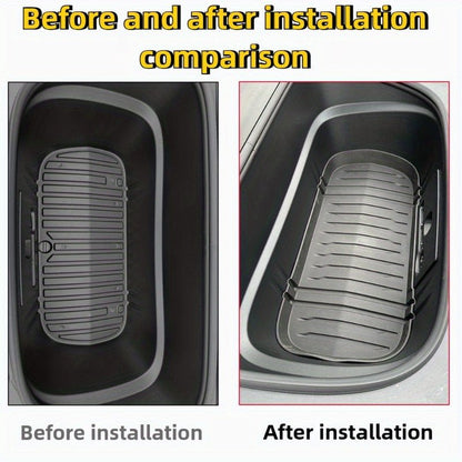 [Super Durable] This durable TPE mat protects your Tesla Model Y Juniper 2025 trunk from dirt, spills, and wear. It’s easy to clean, handling everything from muddy boots to accidental spills without stress. Keep your trunk looking fresh and well-protected with this reliable upgrade.