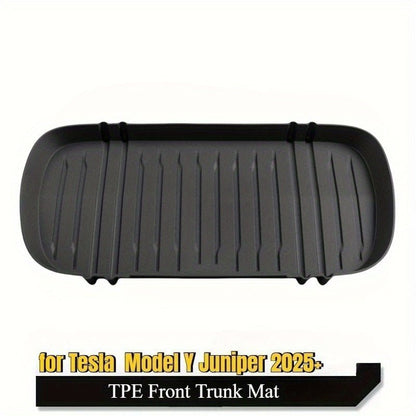 Keep your Tesla Model Y Juniper 2025 trunk neat and organized with these durable, easy-to-clean TPE mats and customizable partitions. They protect against spills and wear while letting you adjust the storage space to fit your needs—whether for large gear or many small items. Quickly transform your front trunk into a layered compartment for better organization and a cleaner look. This upgrade combines practicality with style, making your trunk more functional and impressive.