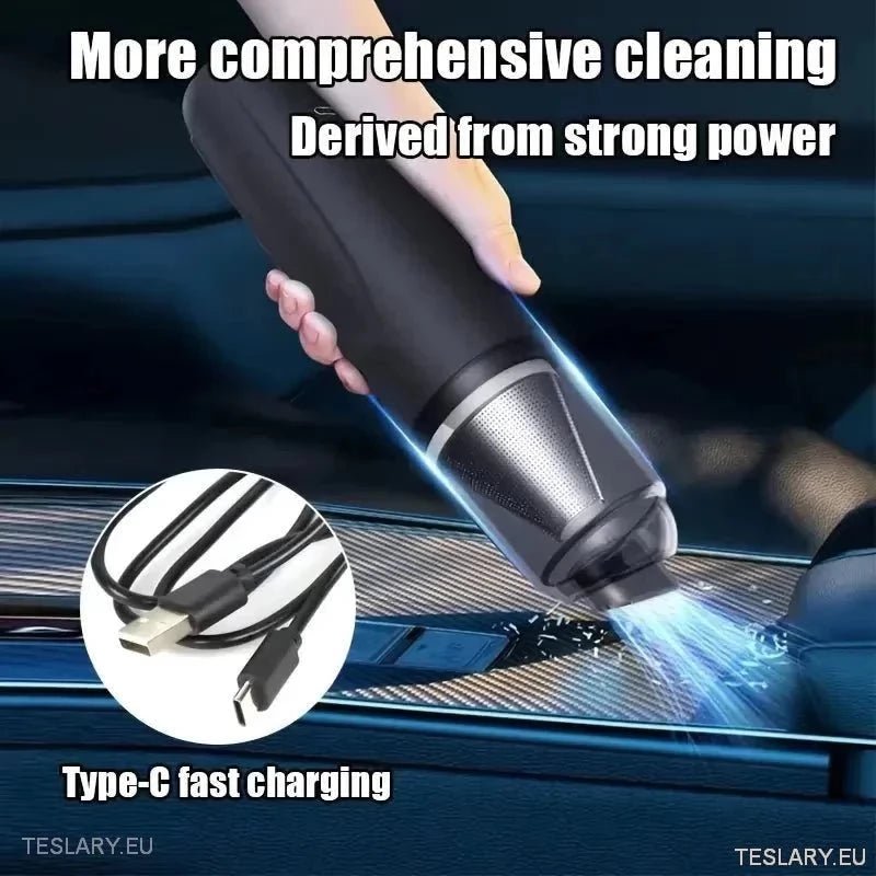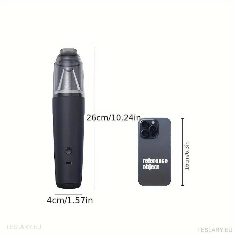 Mini Car Vacuum with Lithium Battery for Wireless Operation and easy Storage and Charging in your EV. Suitable for the Tesla Model 3 , Model Y , Model S , Model X , Cybertruck , BYD Seal , BYD ATTO3 , MG EV4 , KIA EV3 EV6 EV9 , Hyundai Ioniq and Many Other EVs