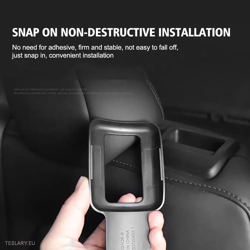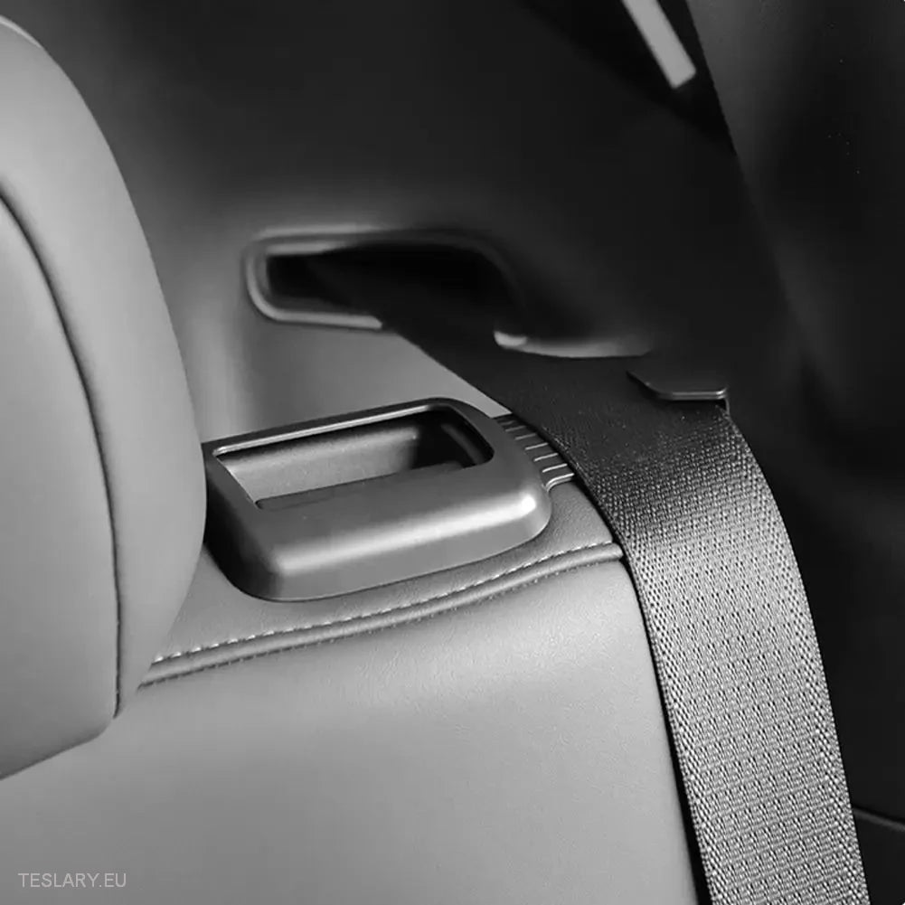 Hassle-free and safe travels all the way. The Tesla Model Y Rear Seat Belt Limiter Bracket ( 2 Pieces ) puts an end to annoying seat belt mishaps, keeping your rear seat belts smoothly in place..