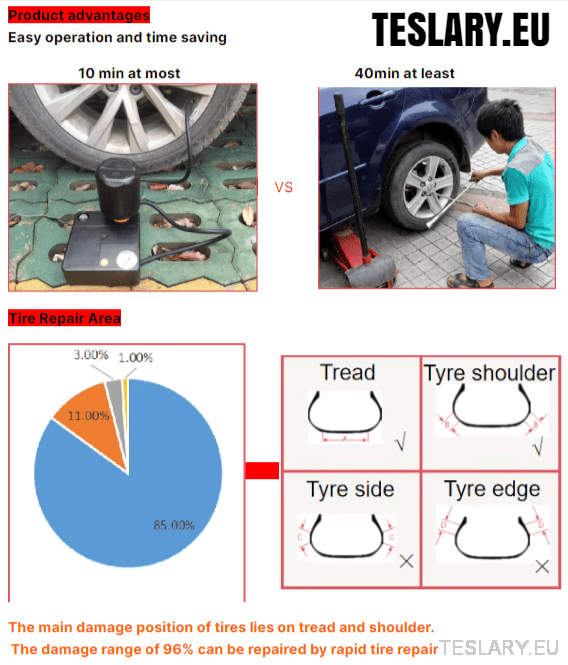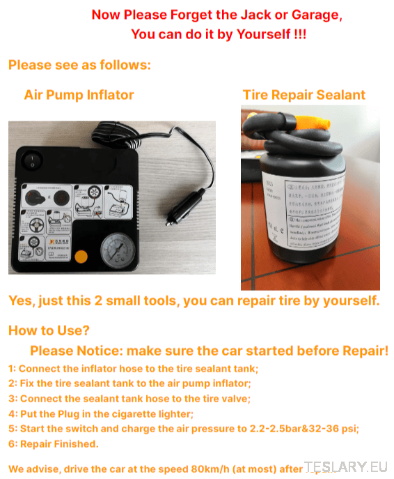 After applying the tyre sealant, it is crucial to take your Tesla to a professional tyre repair centre as soon as possible. The sealant provides only a temporary fix, and continuing to drive at high speeds or over long distances may cause additional punctures or further damage to the tyre. For safety and optimal performance, having the puncture professionally repaired promptly is strongly recommended. This ensures the integrity of your tyre is fully restored, preventing potential hazards and maintaining your vehicle’s handling and efficiency.